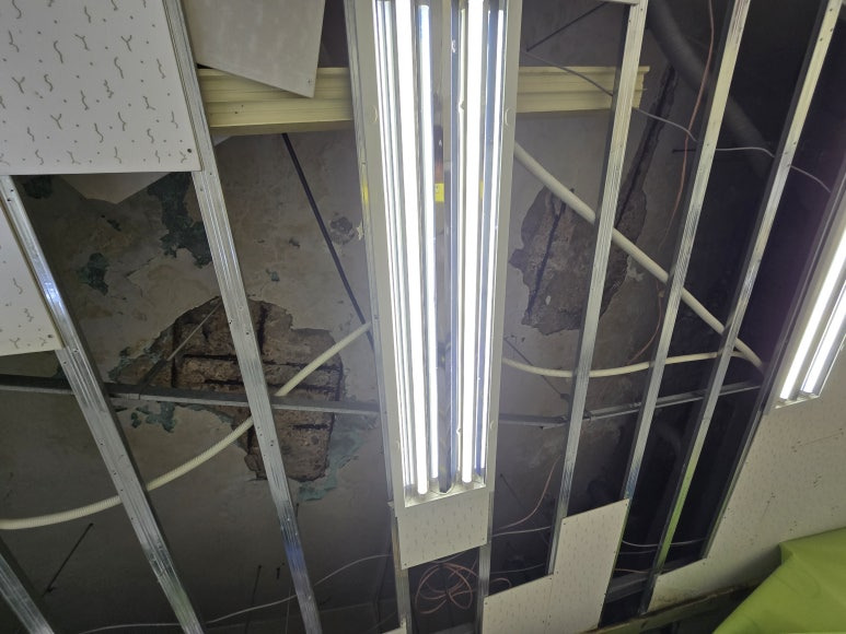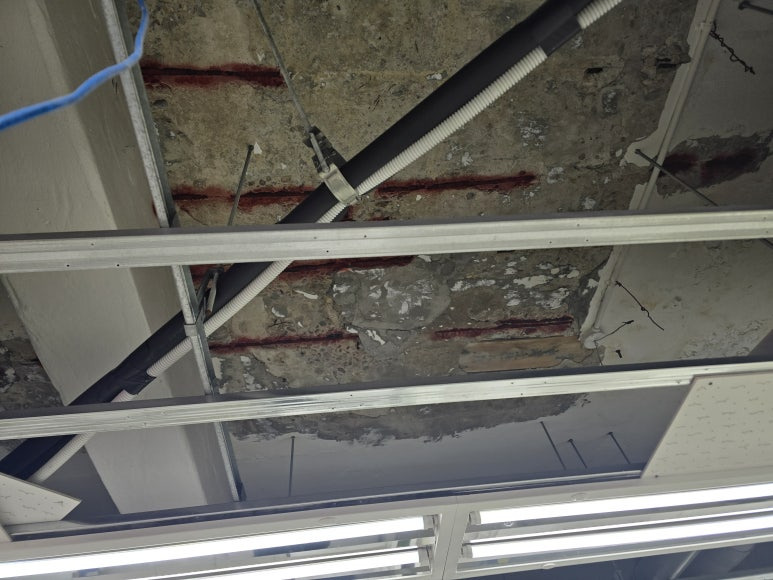 천장을 열어보자마자 곳곳에 콘크리트 탈락,